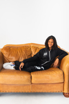 Live in cosy with the Ladies Hoodie Onesie — figure‑flattering taper, kangaroo pocket, and cuffed ankles blend comfort and style. Perfect for crew travel, studio sleepovers, and foil chest branding.